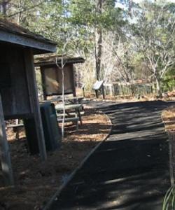 The trail is FREE and is lighted to be enjoyed any time. If you arrive Mon-Fri 9-1, visit the log cabin at the end of the trail, which has one room of flora and wildlife exhibits (alligator, bobcat, fox, beaver, feral hog head, beehive)and a clean bathroom.