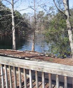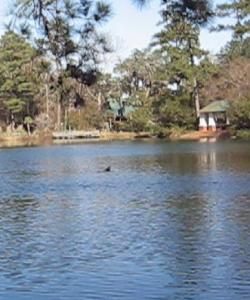 The 3-acre lake is home for fish, turtles, ducks, wading herons and alligators up to 4’ long. Seasonally, you should come across butterflies which are attracted to flowers chosen to entice them. There are feeders to attract birds, and food dispensers on the banks of the pond to tempt ducks and turtles.