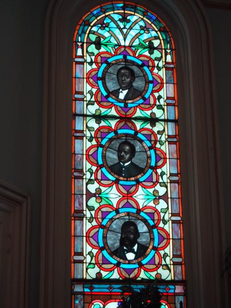 Oldest in America, this Congregation was organized in 1773, and the sanctuary was built in 1859 by slaves and free blacks who built it brick by brick by lantern light in their meager time off. One of the first ministers, Andrew Cox Marshall, asked blacks who were saving up to buy their freedom ($1,500) to put the money towards buying the land. To build this structure, men made the bricks down by the river in the overnight hours, and women carried them up to this spot.