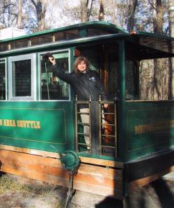 Even if you are not a camper, at this park you can stay overnight in a converted caboose, a trolley car or in a little Hansel and Gretel cabin. The caboose is actually sitting on train tracks and has a front and back platform. The pine cottage has a porch and wooden swing and just enough room for the beds. The trolley came here all the way from Charleston and is glass windowed, so you have the whole outside inside during the day but can close the blinds at night.